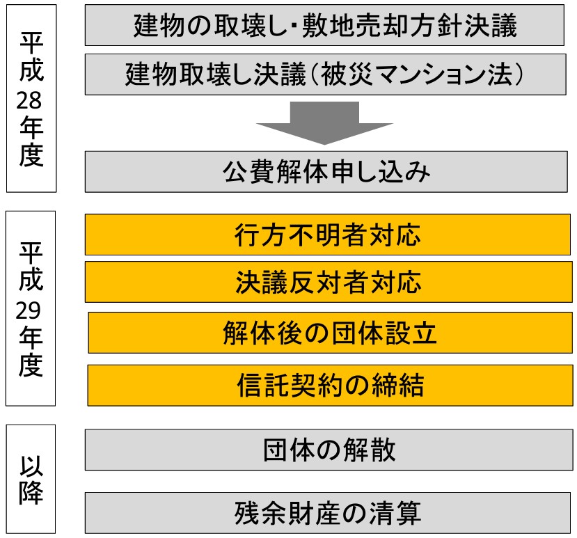 一つ目のケースは、マンションが被害を受けて、総会を開き、被害が甚大であったため、取り壊しの決議が比較的スムーズに行われたようだ。